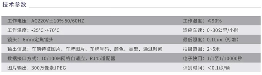 集车牌识别、摄像、前端储存、补光等一体,极致优化的嵌入式车牌识别算法;